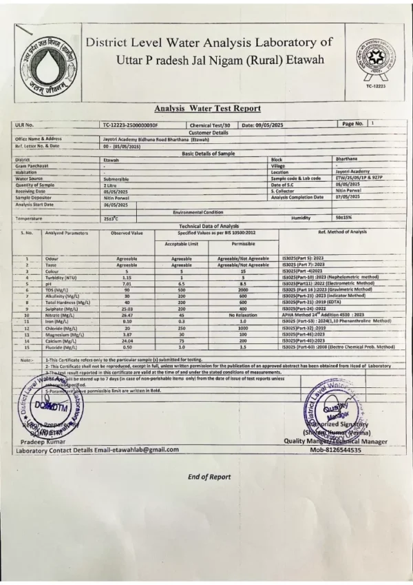 Safe Water and Sanitation Certificate