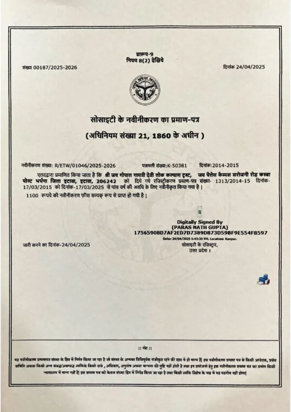 Society Renewal Certificate